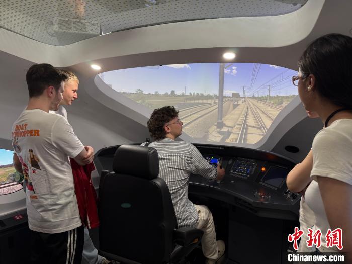 20日,德國伯樂中文合唱團的師生在成都體驗高鐵模擬駕駛。中新網記者 賀劭清 攝