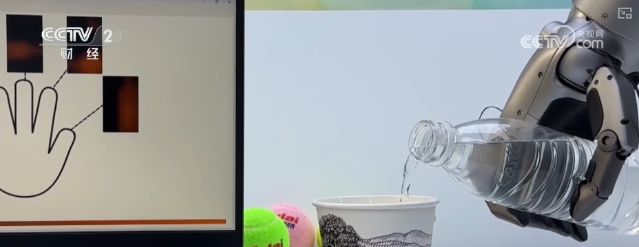 某企業負責人王鑫介紹,搭載了“電子皮膚”之後,人形機器人去抓取一個物體,就可以最大程度把物體的本體形狀進行還原,變成一個機器人可以讀懂的電信號去處理信息,然後機器人就可以判斷它使用多大的力,或者是什麼控制方式去抓取。