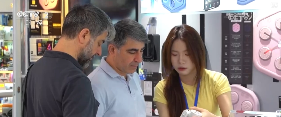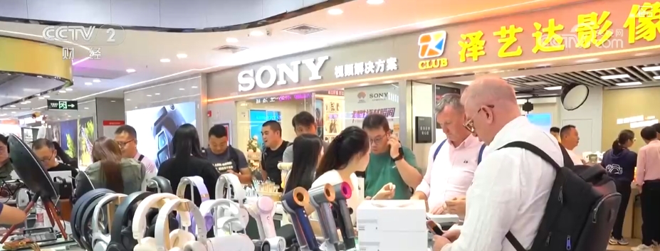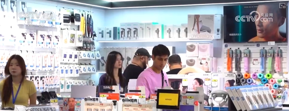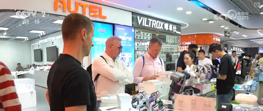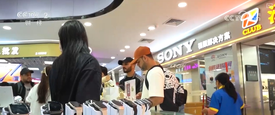 在2樓的整機零售商鋪前,精緻實惠的商品吸引了不少外國買家。門店負責人介紹,得益於免簽入境、離境退税等政策,不少外國消費者專程來到華強北線下門店進行採購。而這些外國客户也成為他們繼續開拓海外市場的商機。