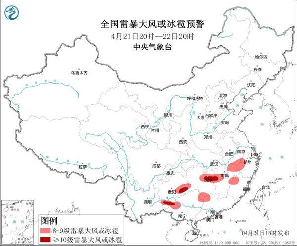 降雨還可能伴隨着強對流天氣,預計湖南中部、江西中部、貴州東南部、廣西西北部等地的部分地區將有10級以上雷暴大風;安徽南部、湖南中西部和南部、江西中北部、貴州中東部、廣西東北部等地的部分地區小時雨量大於50毫米,最大可達70毫米以上。
