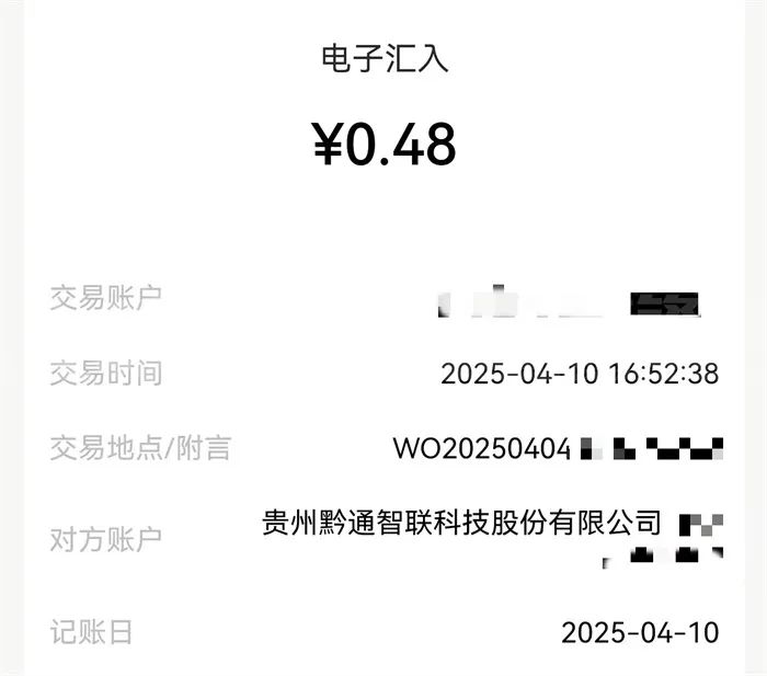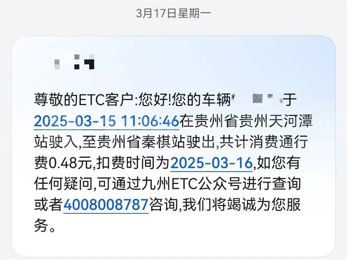 “這一路段是免費路段,按理説是不會收取通行費的,但是我確實被扣了費。我多次電話詢問後,才被告知是因為系統升級導致的,款項在我主動登記信息後退回,時間較長。”鄔先生告訴記者,直到4月10日,他收到來自貴州黔通智聯科技股份有限公司的退款。