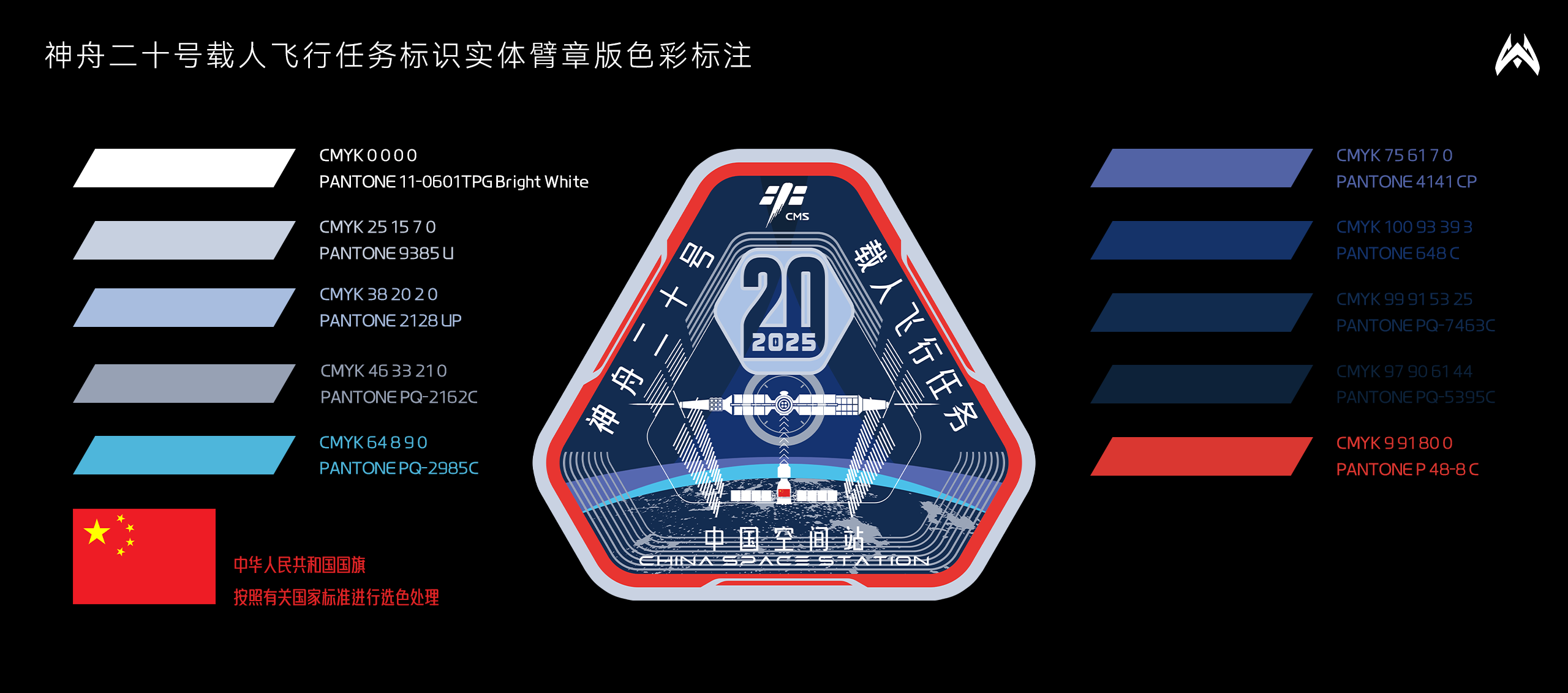 △神舟二十號載人飛行任務標識實體臂章版色彩標註