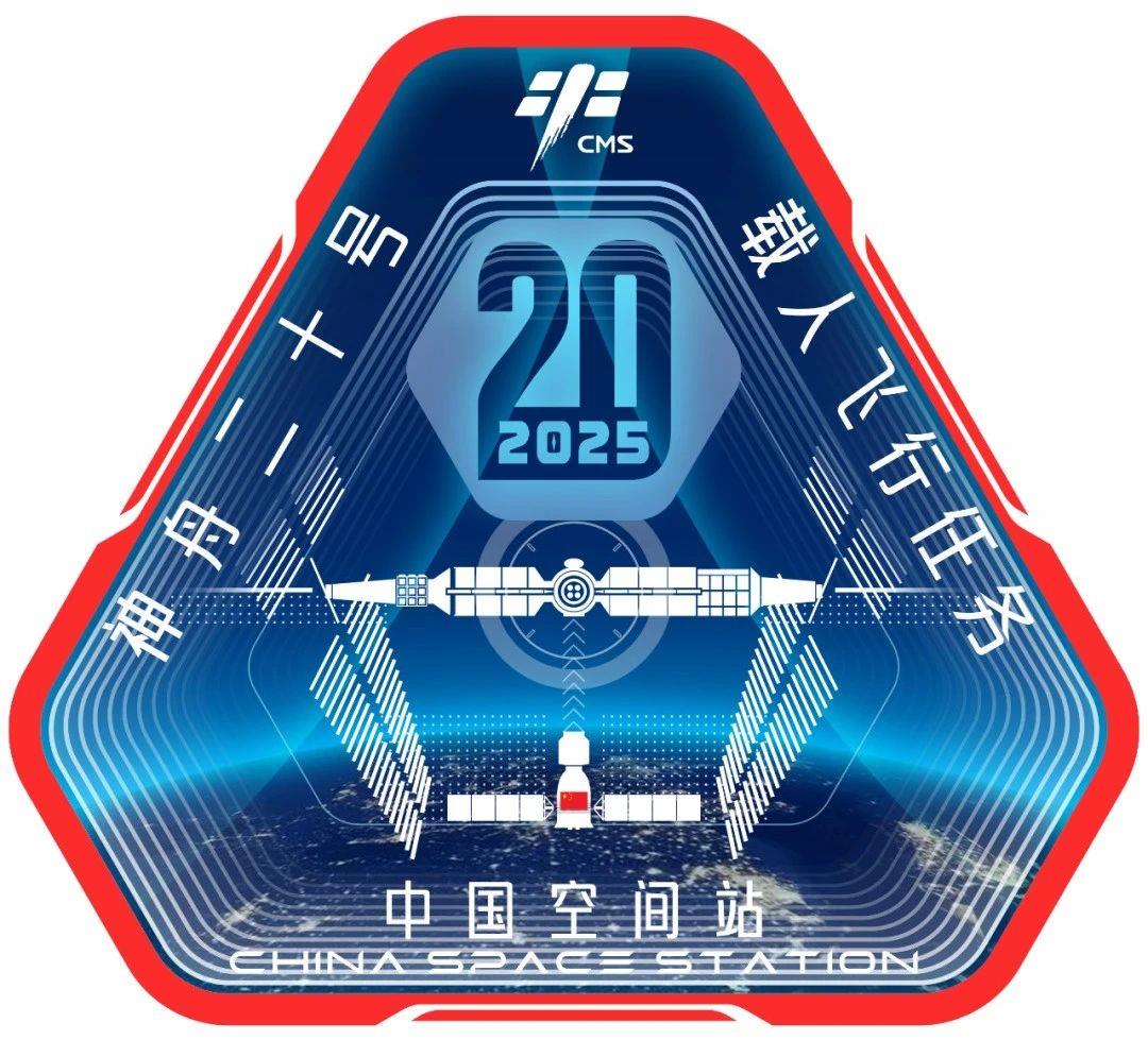 神舟二十號載人飛行任務標識,融合傳統與創新,以穩定三角形為基,象徵航天人在經驗基礎上攀登新高峯。