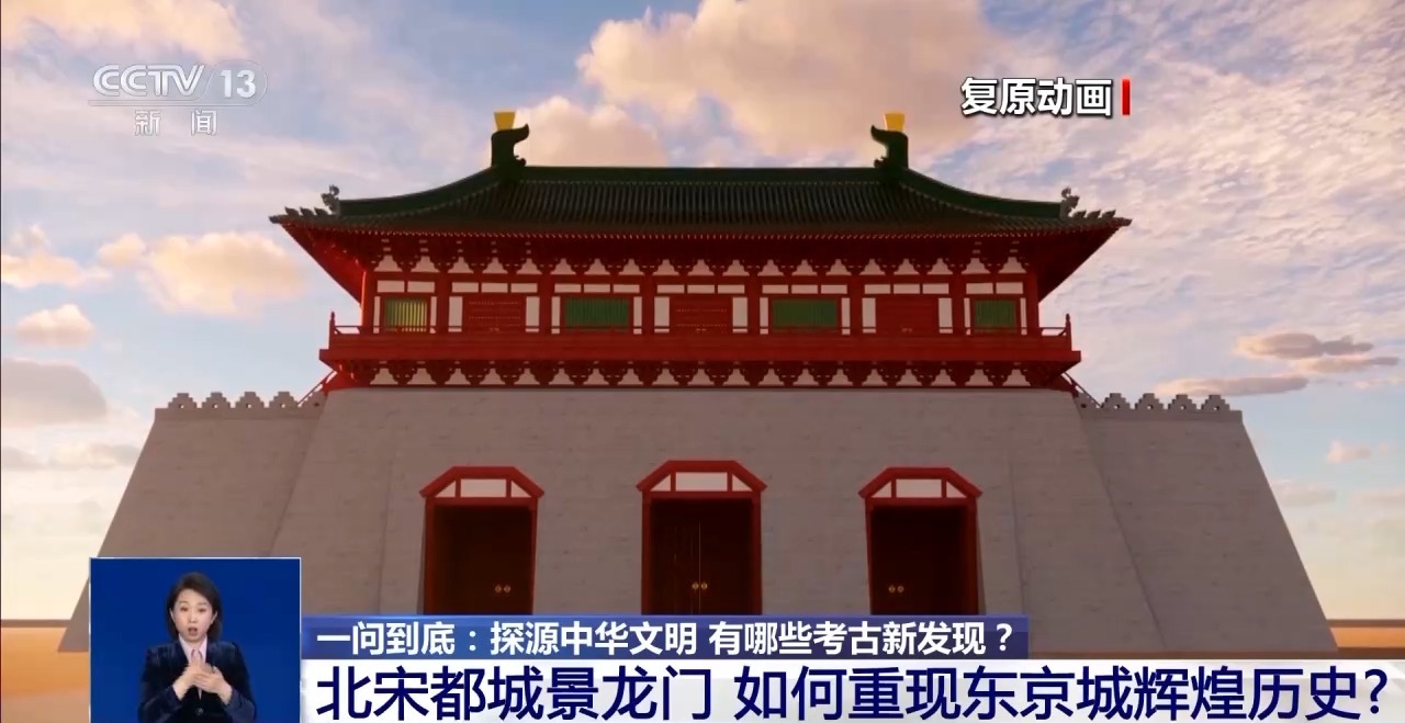 考古發掘顯示,景龍門通寬約60米、進深超過19米,規模宏大;整體由3個門道、隔牆及兩側墩台構成。尤其發現墩台屬於包磚逐層錯縫露齦砌造,與《清明上河圖》尾段刻畫的城門營造法式相同,《清明上河圖》成為考古專家復原景龍門的一個重要參照。