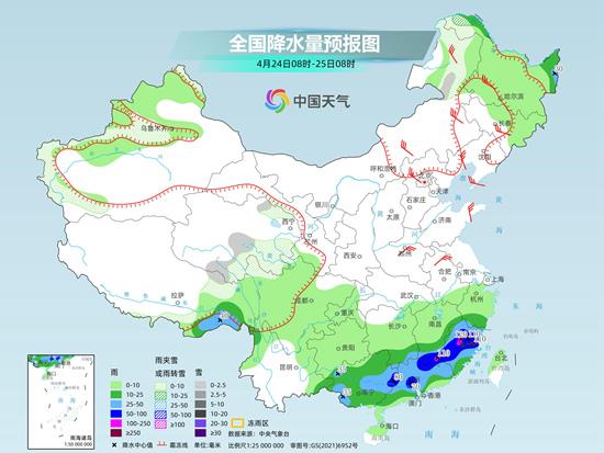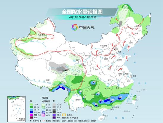 明天,新疆沿天山地區和南疆西部山區、青海大部、內蒙古東北部、西藏東部和南部、川西高原北部等地部分地區有小到中雪或雨夾雪,其中,青海南部等地部分地區有大雪。江西南部、湖南南部、福建中南部、廣西大部、廣東北部以及雲南東部、重慶等地部分地區有中到大雨,其中,福建西南部、廣西中部、廣東北部、西藏東南部等地部分地區有暴雨。