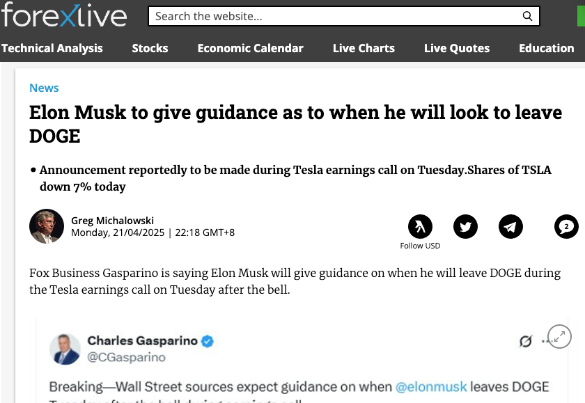 【環球網科技綜合報道】4月22日消息,據多家外媒報道,特斯拉CEO埃隆·馬斯克(Elon Musk)可能於當地時間週二(北京時間週三凌晨)特斯拉第一季度財報電話會議上,首次公開其在美國“政府效率部”(Department of Government Efficiency,簡稱DOGE)的去留時間表。