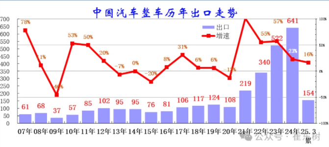 【環球網科技綜合報道】4月22日消息,乘聯分會秘書長崔東樹發佈的最新數據顯示,2025年1-3月中國汽車出口總量達154萬輛,同比增長16%,其中3月單月出口量達57萬輛,同比增長16%,延續了自2024年以來的強勁增長態勢。崔東樹指出,這一增長主要得益於中國汽車產品競爭力的持續提升,以及全球南方國家市場的需求拉動。