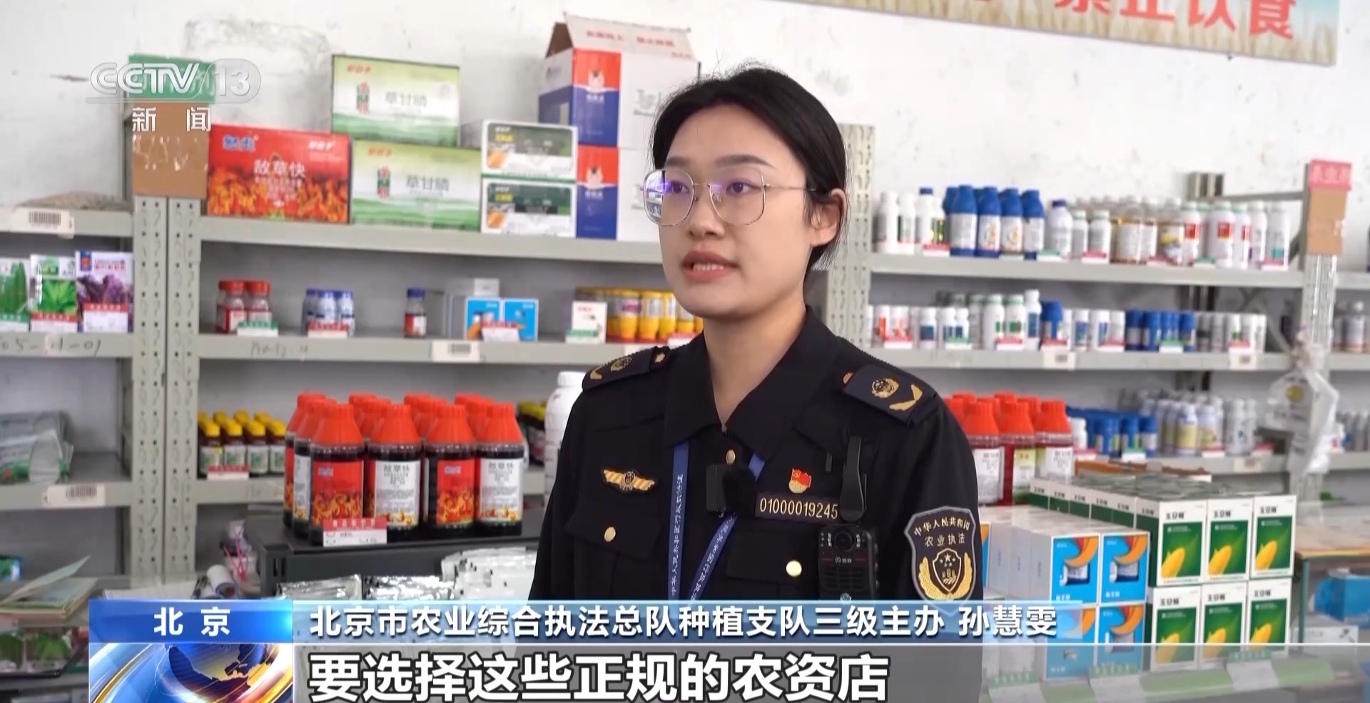 *北京市農業綜合執法總隊種植支隊三級主辦 孫慧雯:*要選擇這些正規的農資店,要謹慎選擇那些走街串巷上門推銷的商販推銷的產品。第二點就是我們通過網絡選購農資產品的時候,要選擇正規的電子商務平台。