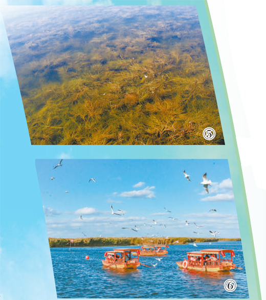 湖區生物多樣性明顯提升,目前共有魚類20多種,鳥類260多種600多萬隻。2023年12月,烏梁素海入選國家重要濕地名錄。(見圖⑥)