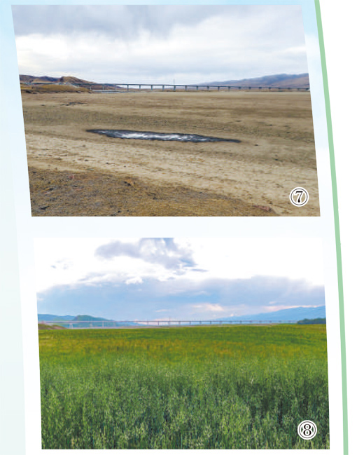 早期的礦產開發、道路修建等對土地造成了不同程度的破壞,草原退化嚴重,植被覆蓋率下降,土壤肥力降低,濕地面積減少,生態系統失衡。(見圖⑦)