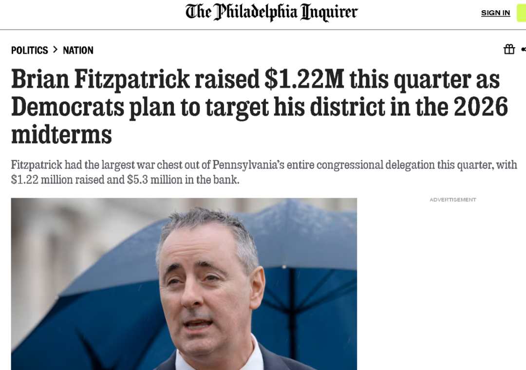根據美國右翼新聞網站“每日傳訊”(Daily Caller)的報道,這個在烏克蘭向俄軍發射炮彈的美國議員名叫布賴恩·菲茨帕特里克,在美國國會眾議院中代表賓夕法尼亞州的第一選區。