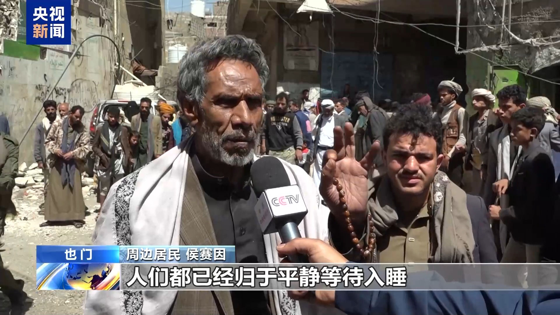*總枱報道員 哈桑·巴穆史慕斯:*美軍每天持續對也門多地進行頻繁空襲。我身後這個位於薩那東部,人口稠密的居民區內的市場也遭到了美軍空襲。整個市場被摧毀,空襲還造成了大量人員傷亡,同時在居民中引起了極大的恐慌。