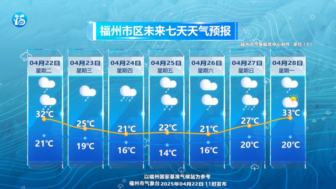 今天氣温仍然保持較高,明天起氣温明顯下滑,未來三天福州市區最高氣温將會逐步降至*21℃*左右,最低氣温也會相應下降,體感較為清涼舒適,但氣温波動,請注意適當增減衣物。