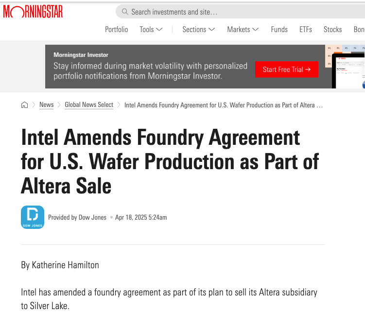 在外媒看來此舉是英特爾剝離非核心業務,聚焦IDM 2.0轉型的關鍵一步。自2023年宣佈剝離Altera以來,英特爾持續通過資產出售和代工業務調整優化資本結構。此次與Altera的長期合作,既保障了出售交易的順利推進,也釋放了英特爾在FPGA領域的資源,使其能更專注於先進製程研發(如Intel 18A工藝)和外部客户代工業務。(青山)