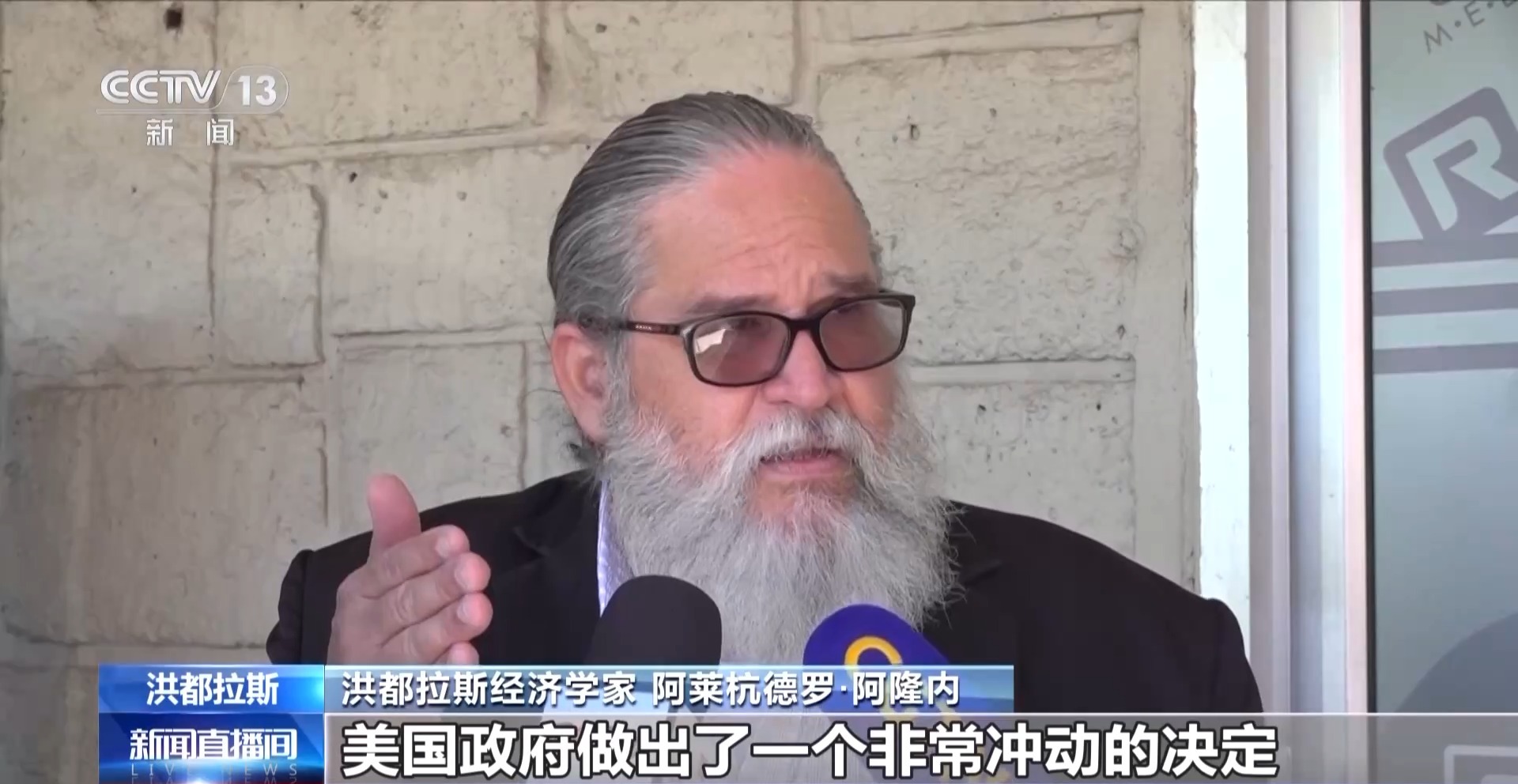 *洪都拉斯經濟學家 阿萊杭德羅·阿隆內:*美國政府做出了一個非常衝動的決定,並沒有考慮太多。他們想要脅迫別人,並改變全球化的遊戲規則,迴歸保護主義,迴歸美國國內增長優先。他們想要美國國內重新獲得製造業,並創造就業的空間。但美國政府犯了一個錯誤,在全球範圍內加徵關税,令資本市場籠罩在不確定的氣氛之中,股價波動。美國政府突如其來的衝動決定,對全球貿易都產生了影響,美國喪失了競爭力。這是美國自己的錯誤,為什麼要其他國家付出代價呢?為什麼?