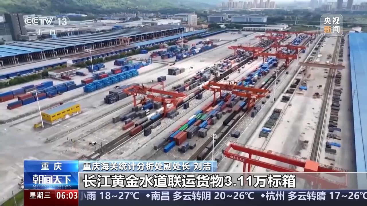 *重慶海關統計分析處副處長 劉潔:*重慶經西部陸海新通道進出口增長1.4倍,西部陸海新通道與中歐班列、長江黃金水道聯運貨物3.11萬標箱,增長15%。