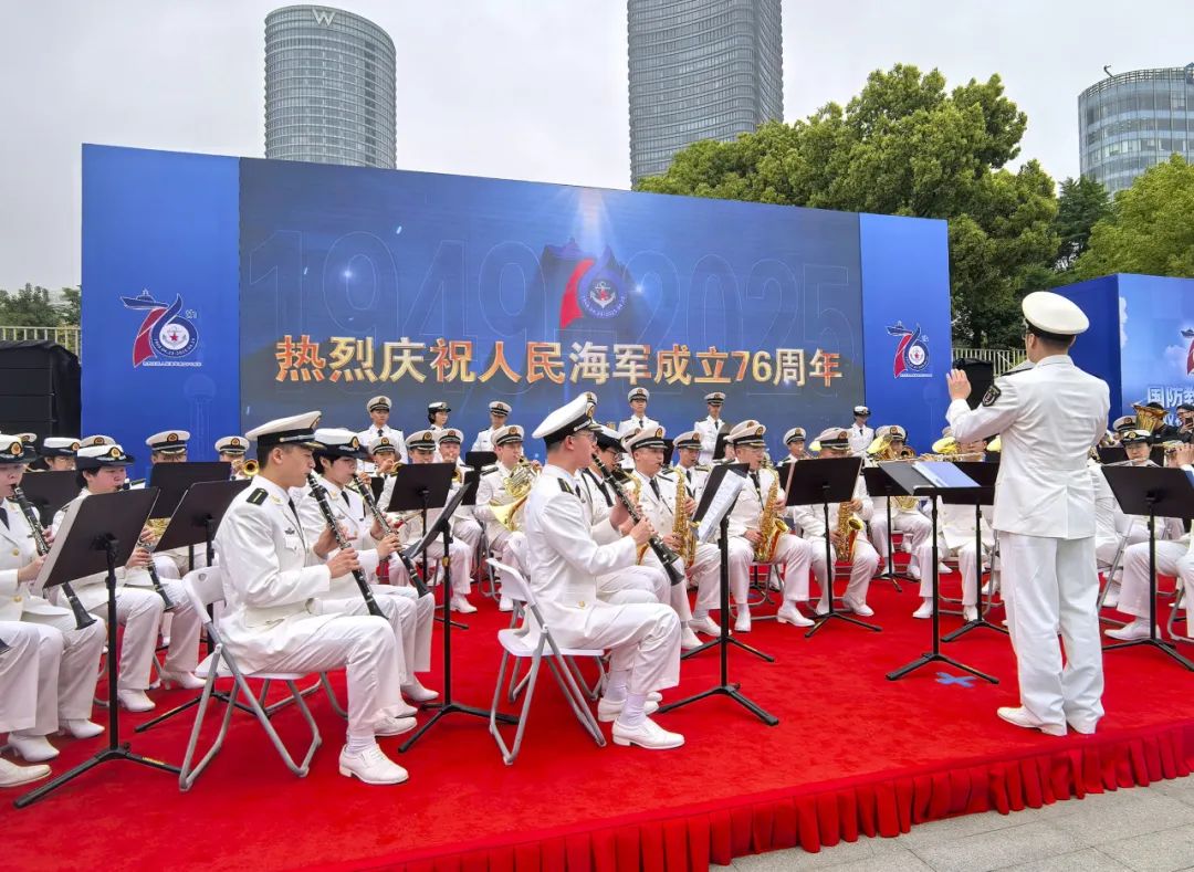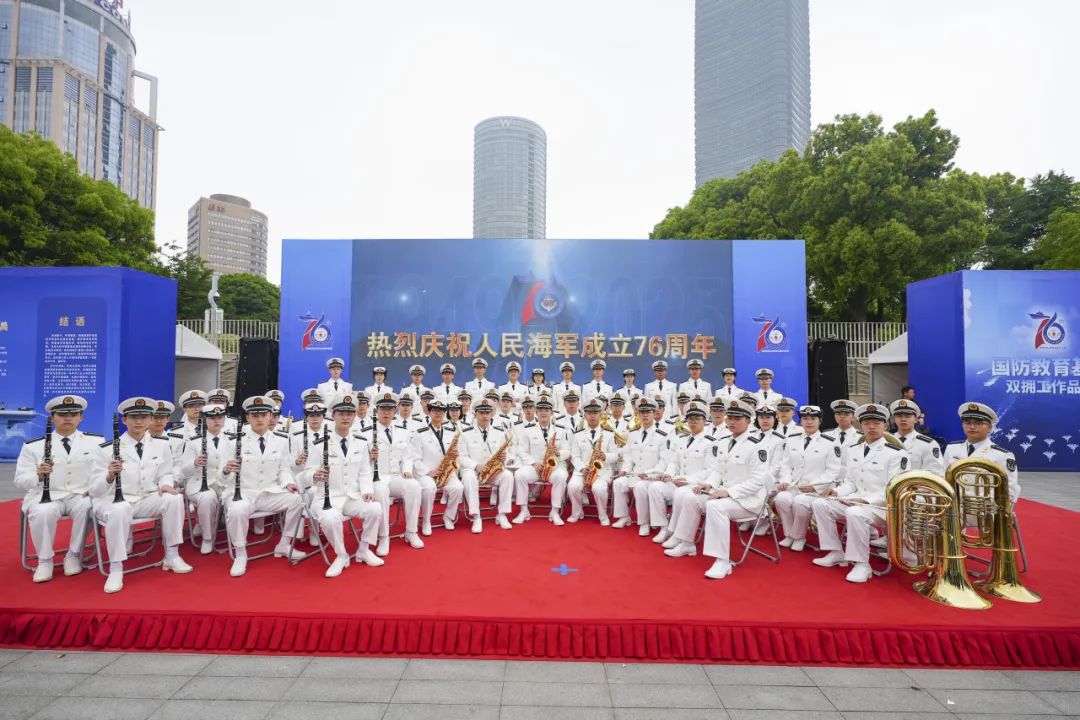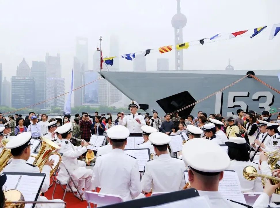 紀念人民海軍成立76週年!海軍軍醫大學軍樂隊亮相上海北外灘