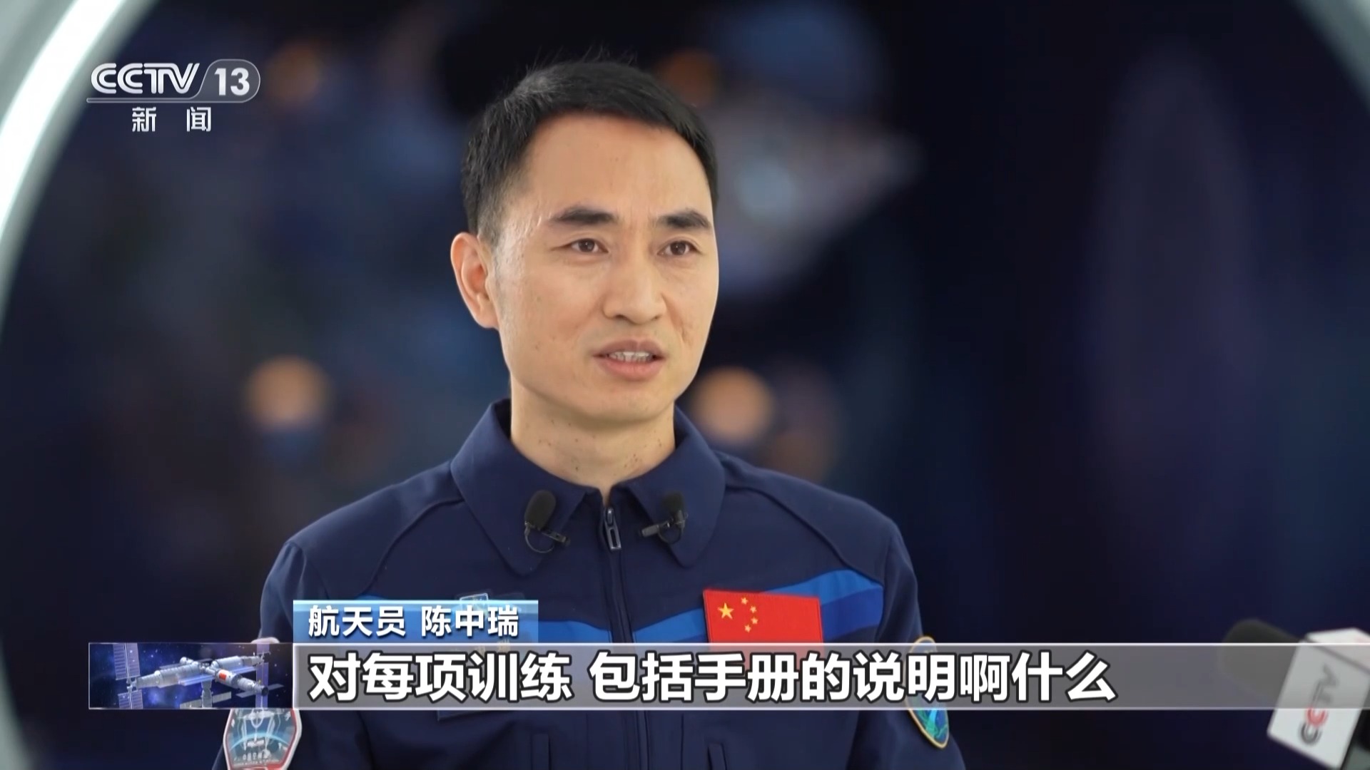 航天員 陳中瑞:嚴謹細緻,我覺得作為我們指令長,他對工作的標準、要求都是比較高的,也比較細緻,我也是有這方面的要求。因為以前作為飛行員,自己駕駛戰機,必須得嚴謹細緻,對每項訓練,包括手冊的説明,看得都很細,都很認真。還有個詞是和諧,我們搭配時間比較長,相互比較瞭解,配合得也比較多,相處都很好,整個組不光是氛圍,包括平時的工作、訓練都很和諧。