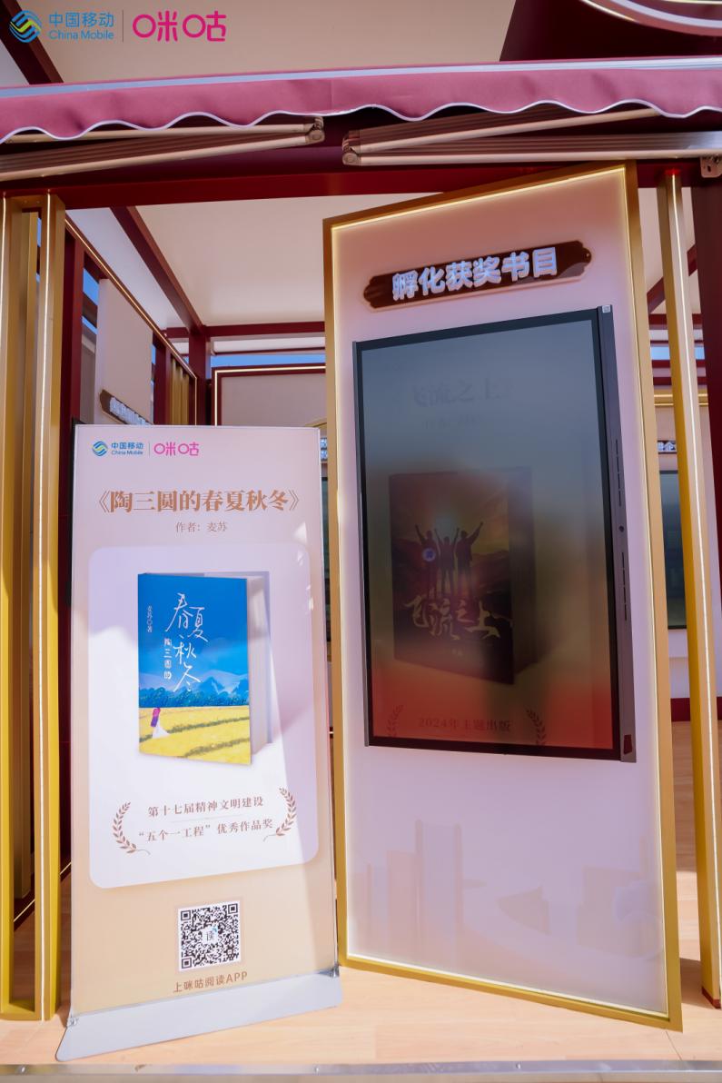 展區入口處,匯聚了咪咕公司孵化的《陶三圓的春夏秋冬》《飛流之上》《生命之巔》等省部級重點獎項獲獎書目。截至目前,咪咕公司已有超百部作品獲得省部級以上獎項,超300部作品躋身行業權威榜單。
