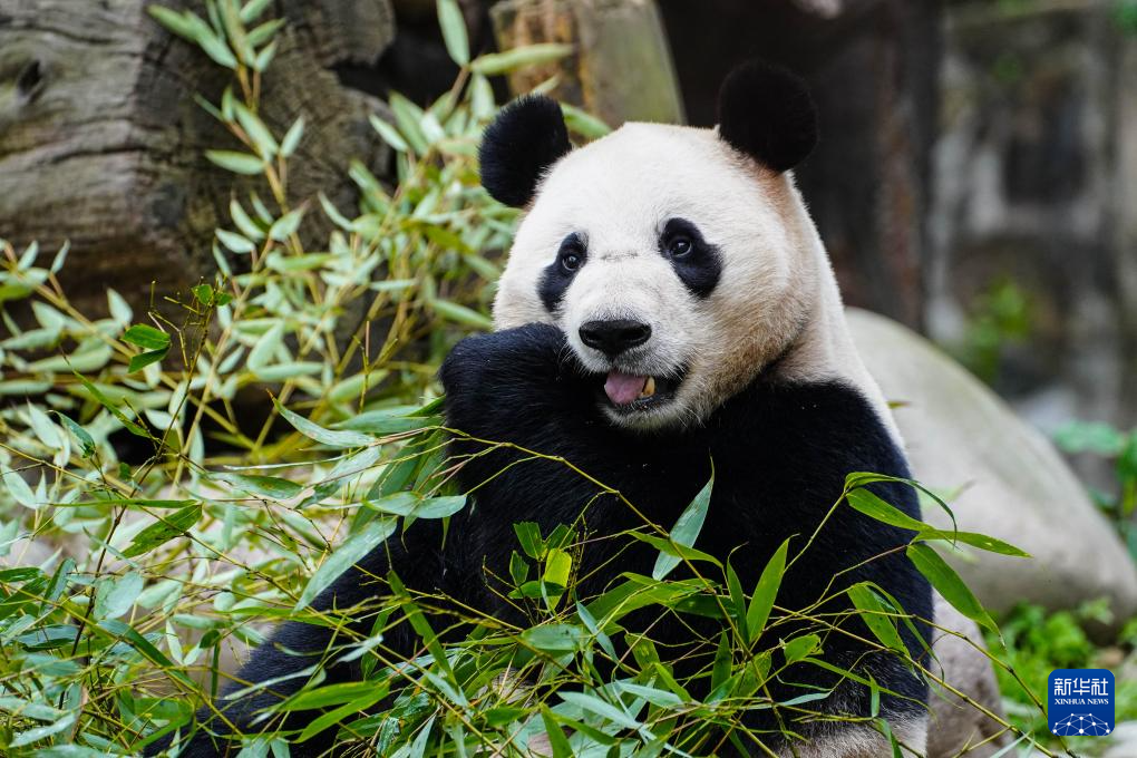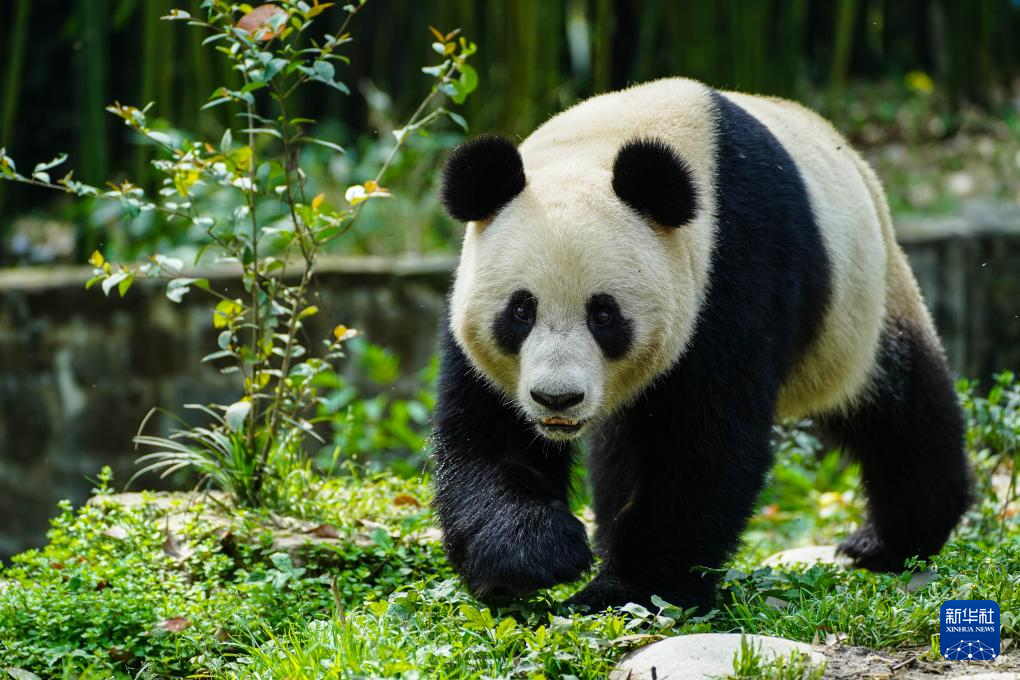 4月9日拍攝的大熊貓“荷風”。新華社發(李傳有攝)