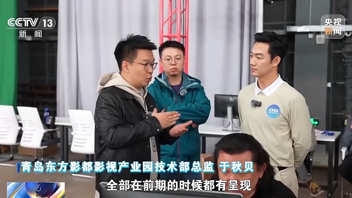 *青島東方影都影視產業園技術部總監 於秋貝:*虛擬預演,電影製作的説明書,像是《流浪地球2》相當於提前把電影拍了一個動畫版的全片,對導演來講的話,我的美術的景該怎麼置?我的燈光放在哪兒?我的攝影機該怎麼去走位?全部在前期都有呈現,也叫後期前置,讓整個電影拍攝的效率更高,讓最終拍攝的質量也更好。