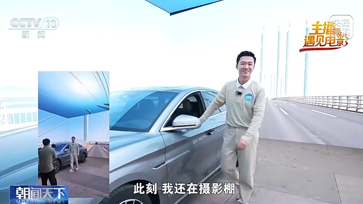 到站了,看見了嗎?此刻 我還在攝影棚呢,這就是電影的魅力。