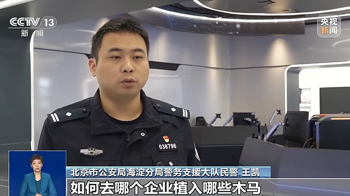 *北京市公安局海淀分局警務支援大隊民警 王凱:*那個隱秘聊天工具裏邊有一個工作羣組,這個工作羣組裏面聊天的內容就是如何分派任務,如何去哪個企業植入哪些木馬,這個是有具體的分工的。