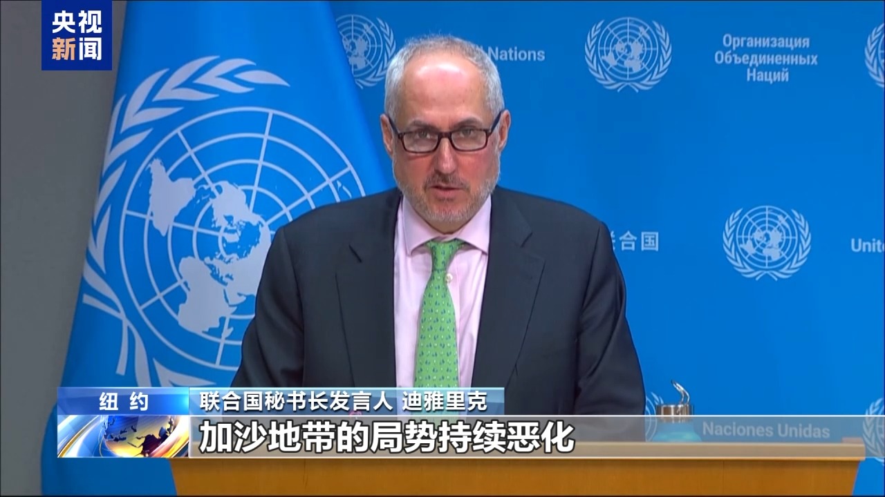 當地時間22日,聯合國秘書長髮言人迪雅裏克通報了加沙地帶的最新狀況。
