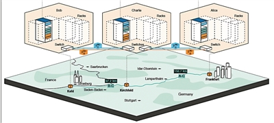 研究人員指出,這個量子通信網絡的部署覆蓋了3個數據中心。通信通過一條從法蘭克福到凱爾、全長253.9公里、損耗為56dB的鏈路實現,其中約五分之三的距離處設有一箇中繼站。這一部署創造了現實世界和實用量子密鑰分發距離的新紀錄。