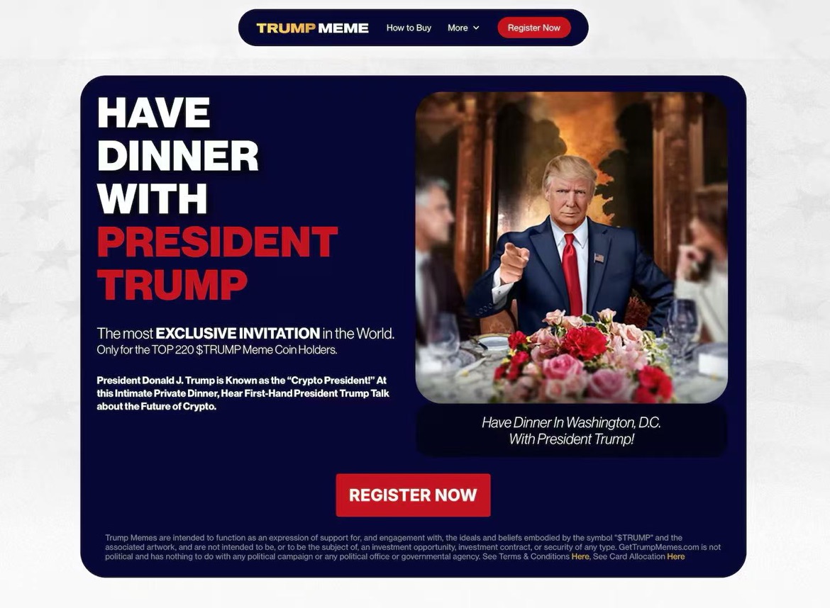 “特朗普幣”運營方高調宣傳“持倉量高者可與特朗普共進晚餐”,民主黨人痛批