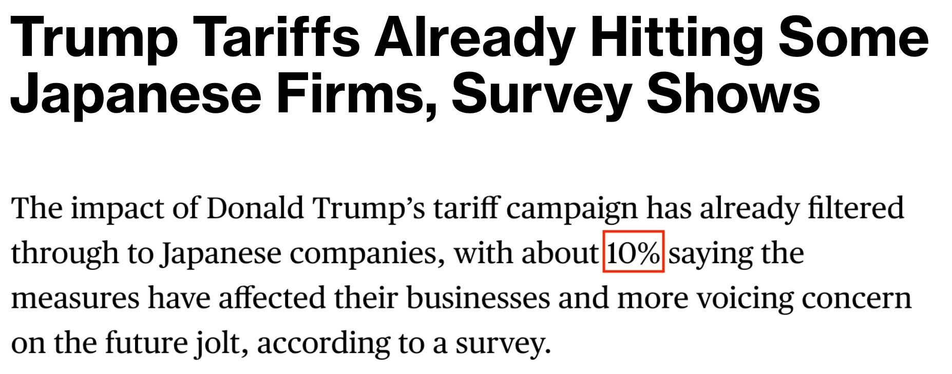 根據日本財務省22日公佈的最新調查結果,約10%的日本企業表示,美國的關税措施已經直接影響到了它們的業務;更多的企業則對未來的關税衝擊感到恐慌。