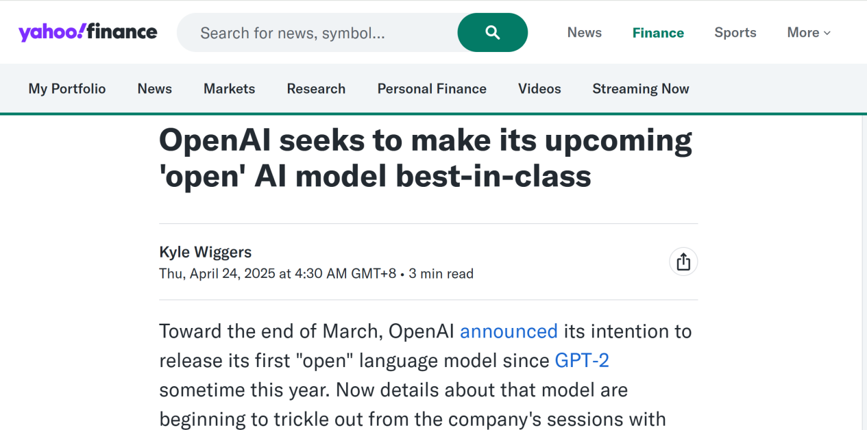 【環球網科技綜合報道】4月24日消息,OpenAI近期宣佈了一項重要計劃,將在今年夏季發佈自GPT-2以來的首個開源語言模型。據悉,該開源模型目前正處於早期開發階段,由OpenAI研究副總裁Aidan Clark領導。公司計劃在夏季初正式發佈,並期望該模型在推理能力上能夠超越其他同類開源推理模型。