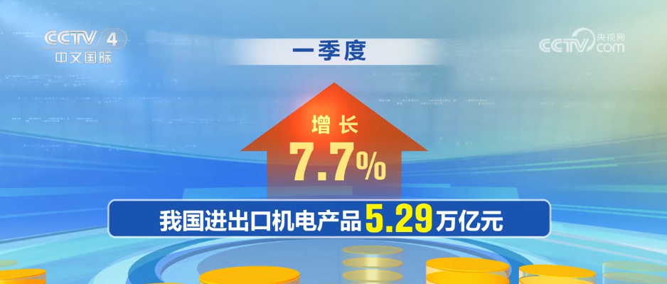 一季度,我國進出口機電產品5.29萬億元,增長7.7%;自主品牌產品出口增長超過10%,佔進出口總值的比重進一步提升至22.8%。