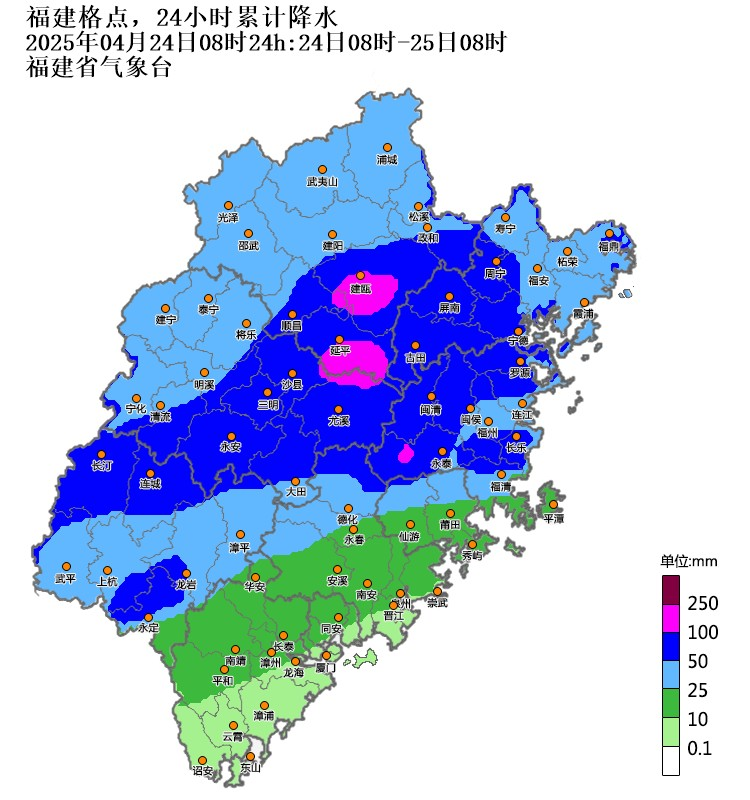 24日08時-25日08時降水量預報