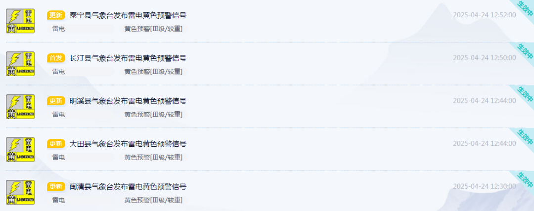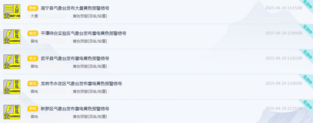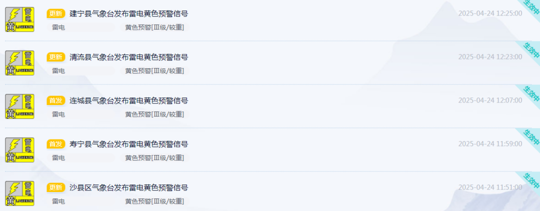 福建多地預警連發