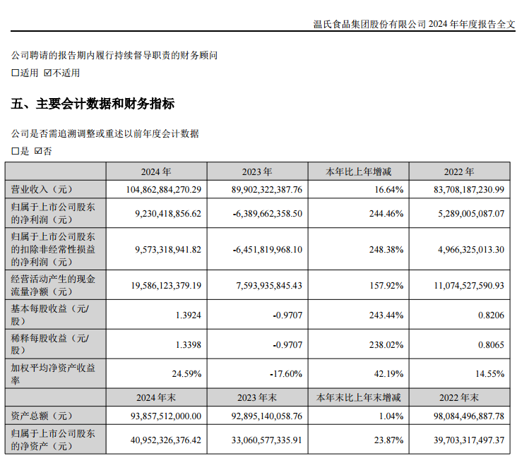 温氏股份2024年年報顯示,公司2024年實現營業收入1048.63億元,同比增長16.64%,實現歸屬於上市公司股東的淨利潤92.3億元,同比扭虧為盈。2024年,公司肉豬銷售3018.27 萬頭(含毛豬及鮮品),同比增長14.93%。