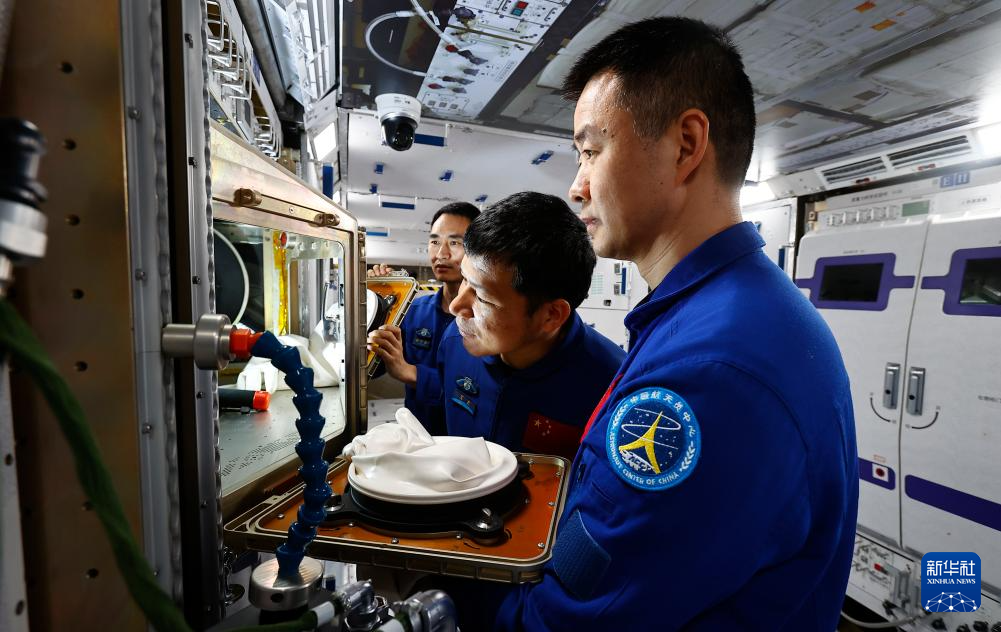 神舟二十號航天員乘組進行在軌實驗操作訓練(2025年2月27日攝)。新華社發(徐部 攝)