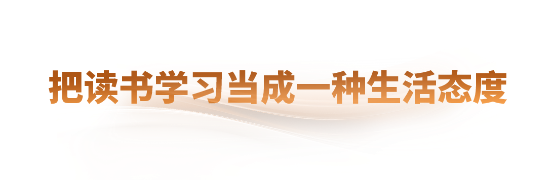 在福建寧德,他組織當地縣委書記參加地委學習中心組讀書班,扛着自己的書帶大家一起學、一起讀;在浙江,他要求紹興領導幹部背誦《蘭亭集序》《釵頭鳳》,增進對當地歷史文化了解;擔任中央黨校校長,他提出“真正把讀書學習當成一種生活態度、一種工作責任、一種精神追求”;黨的十八大以來,他多次以“勤學、修德、明辨、篤實”八字箴言鼓勵年輕一代“珍惜韶華,潛心讀書”……