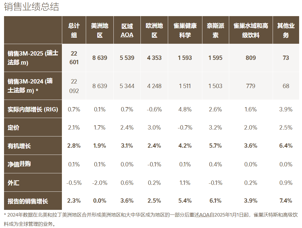 雀巢2025財年一季度:全球銷售額微增,大中華區逆勢增長