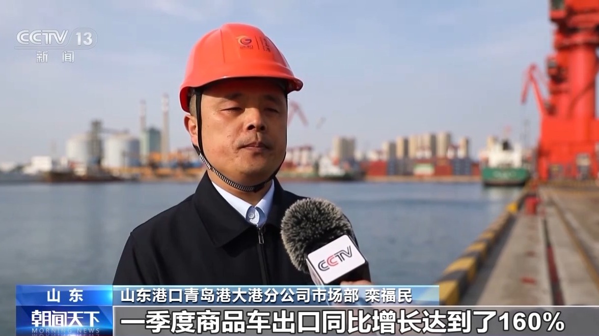 *山東港口青島港大港分公司市場部 欒福民:*中國新能源汽車中南美洲的銷量上漲迅速,我們新開通了中南美洲等地區航線,一季度商品車出口同比增長達160%。