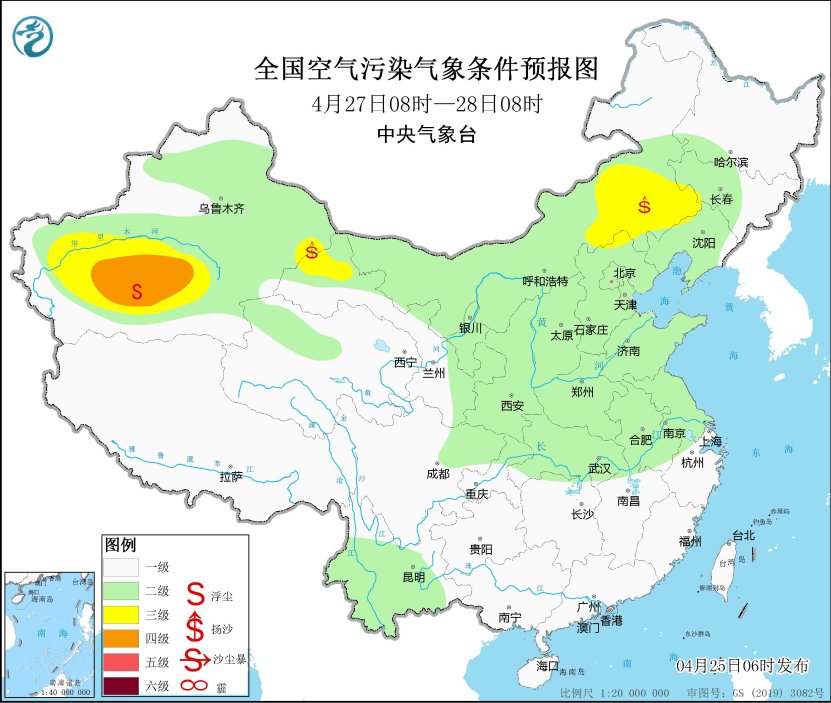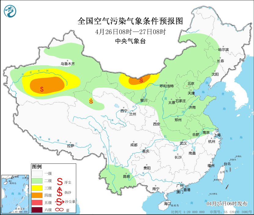 未來一週,新疆南部多沙塵天氣。此外,26日至27日,內蒙古西部和東南部的部分地區有揚沙或浮塵天氣;4月30日至5月2日,受大風天氣影響,新疆東部和南部、西北地區、內蒙古中西部等地自西向東將先後有揚沙或浮塵天氣,新疆東南部、內蒙古西部局地有沙塵暴。