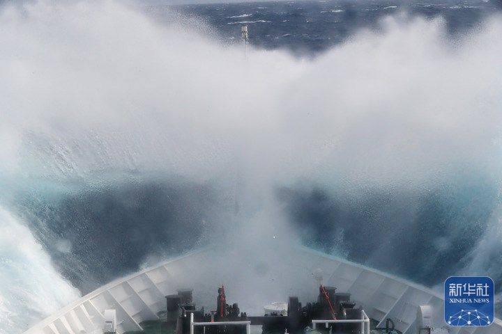 ↑3月17日,在中國黃巖島附近海域,高欄艦劈波斬浪開展常態化巡邏管控任務。