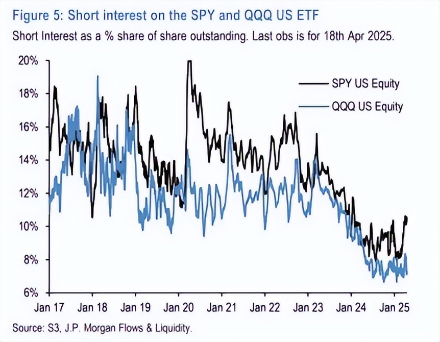 分析師Nikolaos Panigirtzoglou指出:“期貨市場的倉位變化清晰印證了對沖基金的去槓桿化趨勢,尤其是在標普500和納斯達克100合約中。”此外,標普500 ETF的空頭持倉興趣自年初以來激增,中小盤股的空頭頭寸也顯著增加,進一步凸顯對沖基金對市場的主導性影響。