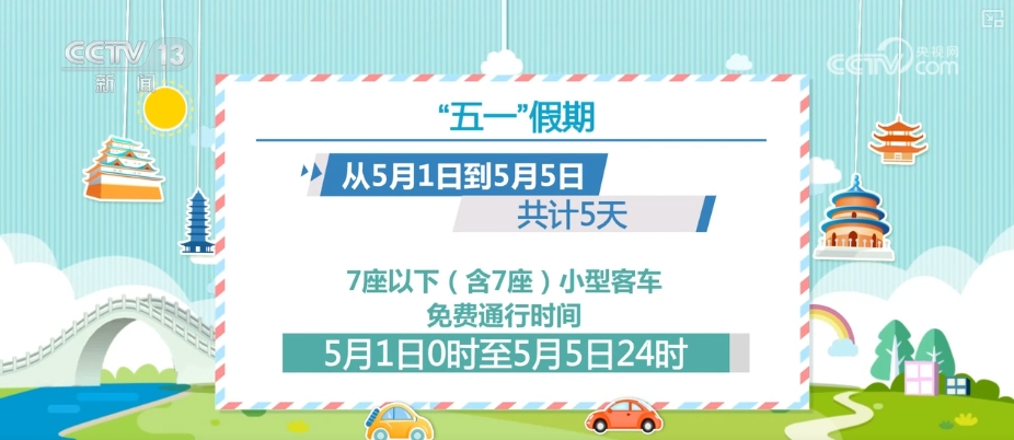 2025年“五一”假期,7座及7座以下的小型客車免費通行全國收費公路時間為5月1日0時至5月5日24時。預計,“五一”假期,全國高速公路日均流量約為6200萬輛,跨省車流量與新能源車流量雙增長。新能源汽車日均流量佔日均總流量近20%,同比明顯增長。
