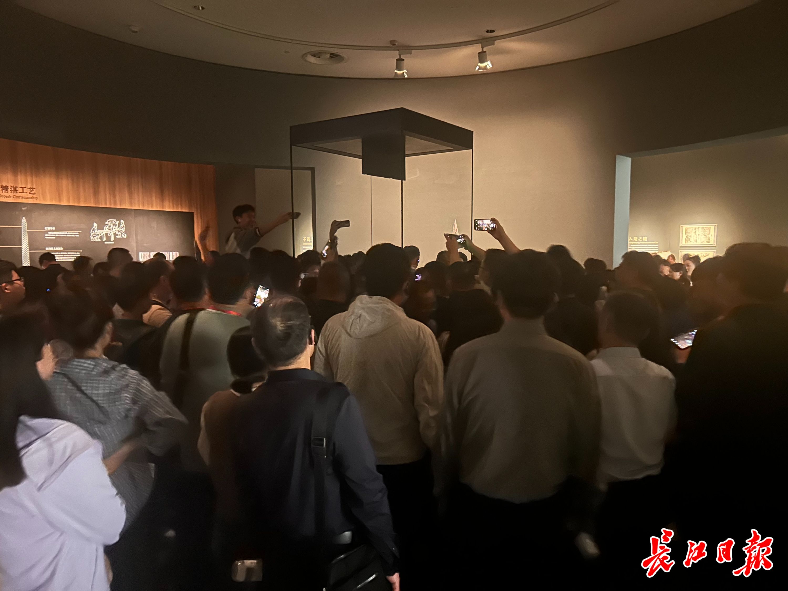 越王勾踐劍前圍滿了遊客。長江日報記者 樊友寒 攝