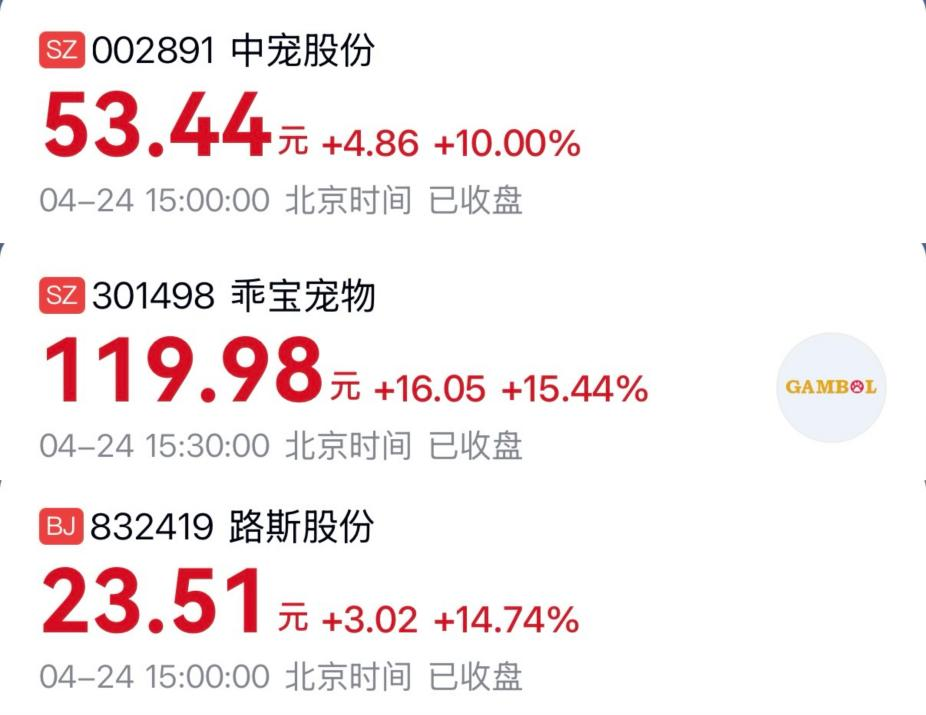 【環球網財經綜合報道】4月24日,中寵股份發佈2024年年報及2025Q1季報後,營收與淨利潤雙增的業績表現引發資本市場強烈反響,並帶動多家寵物經濟概念股震盪走高。截至當日收盤,中寵股份漲停報53.44元/股,創歷史新高,乖寶寵物、路斯股份分別上漲超15%、14.7%。