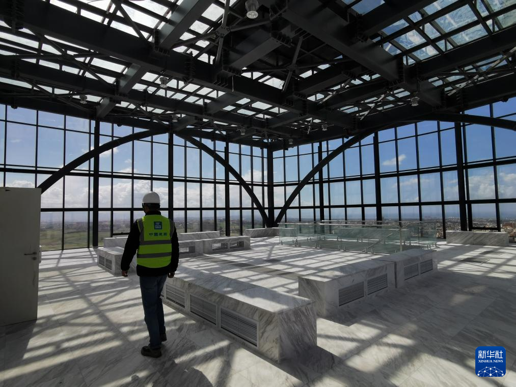 這是3月24日在阿爾及利亞首都阿爾及爾拍攝的住房、城市規劃和城市部的新辦公大樓樓頂平台。新華社記者 徐永春 攝