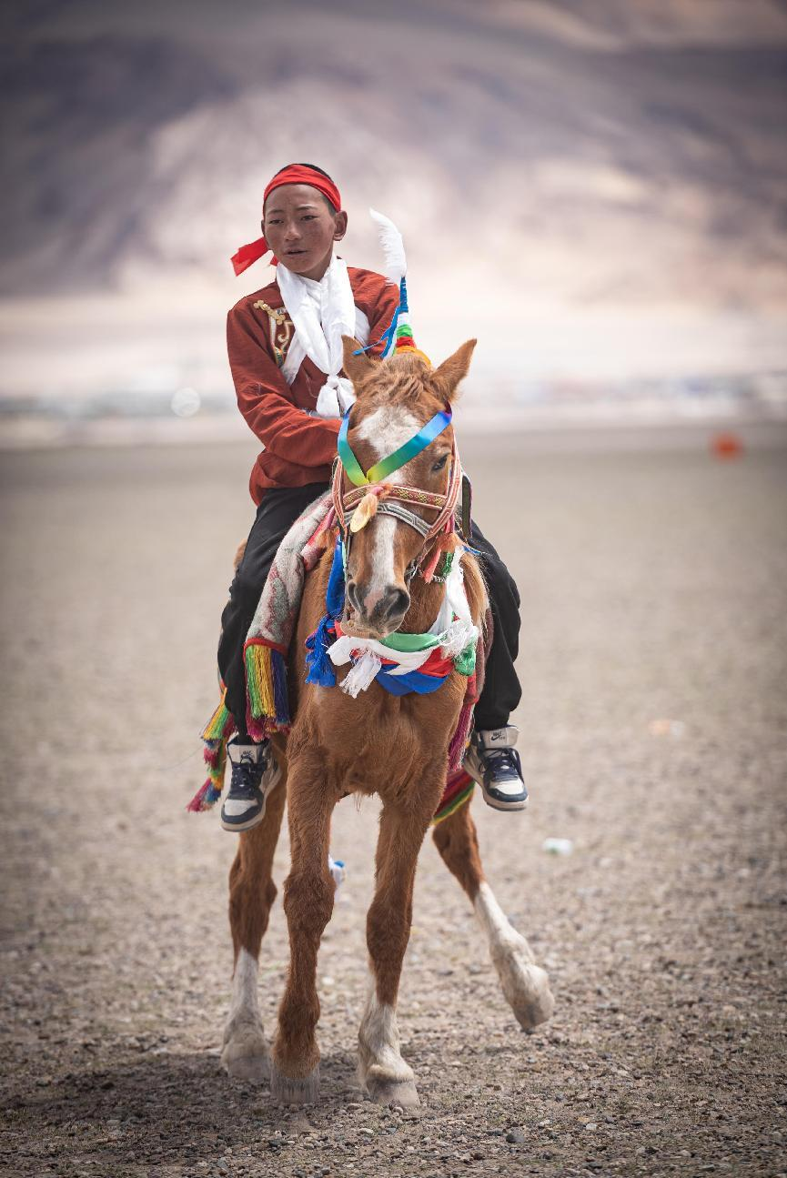 作品簡介(作者自述):賽馬是一項技巧性的運動,也是每年林周縣望果節最為隆重的一項體育活動。活動一般以鄉為單位,各鄉選出優秀的騎手和馬匹統一到指定的鄉進行比賽。此組照片為首屆彭域熱柏久賽馬節隆重舉行。