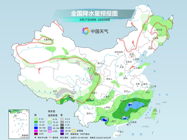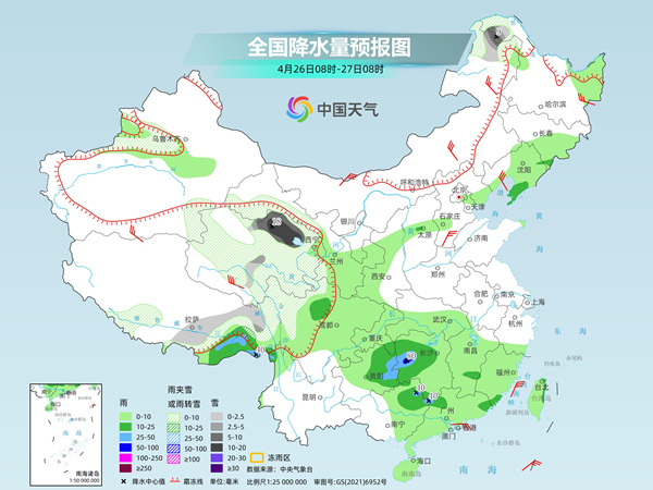 今明兩天,南方新一輪降雨再度上線,並伴有強對流天氣,主要影響時段為今天夜間至明天白天。不過,由於暖濕氣流不強,這輪降雨的強度和對流天氣總體也不算強。同時,受高原槽影響,本月底前西藏、青海等地多雨雪天氣。