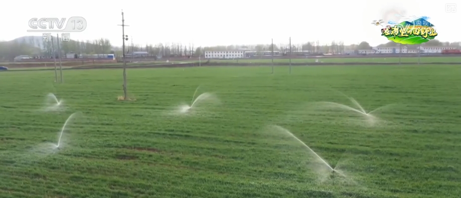 在山西晉城澤州縣的高標準農田智慧農業示範區裏,伸縮式自動噴灌系統正在進行春灌。這種伸縮式噴頭使用時可伸出地面,不使用時則可縮至地下40釐米,不影響農機在地面的作業。這個系統將地塊分為11個灌溉區,只需一次性設置,11個區域便可依次完成自動灌溉。
